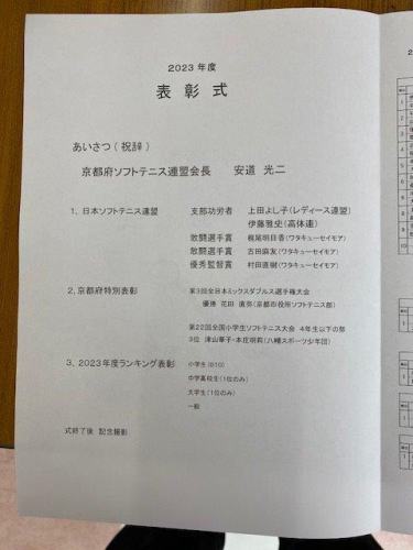 2023年度京都府ソフトテニス連盟 表彰式