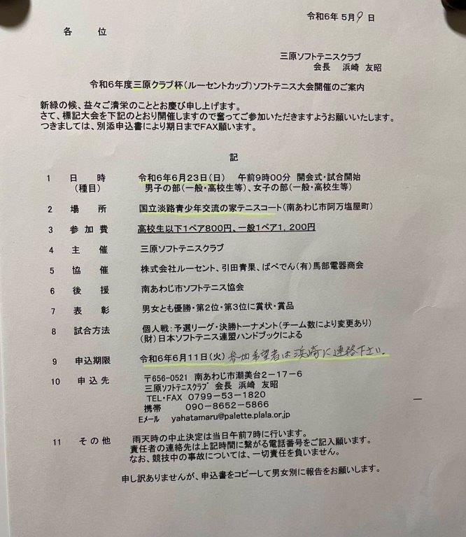 令和6年度三原クラブ杯(ルーセントカップ)