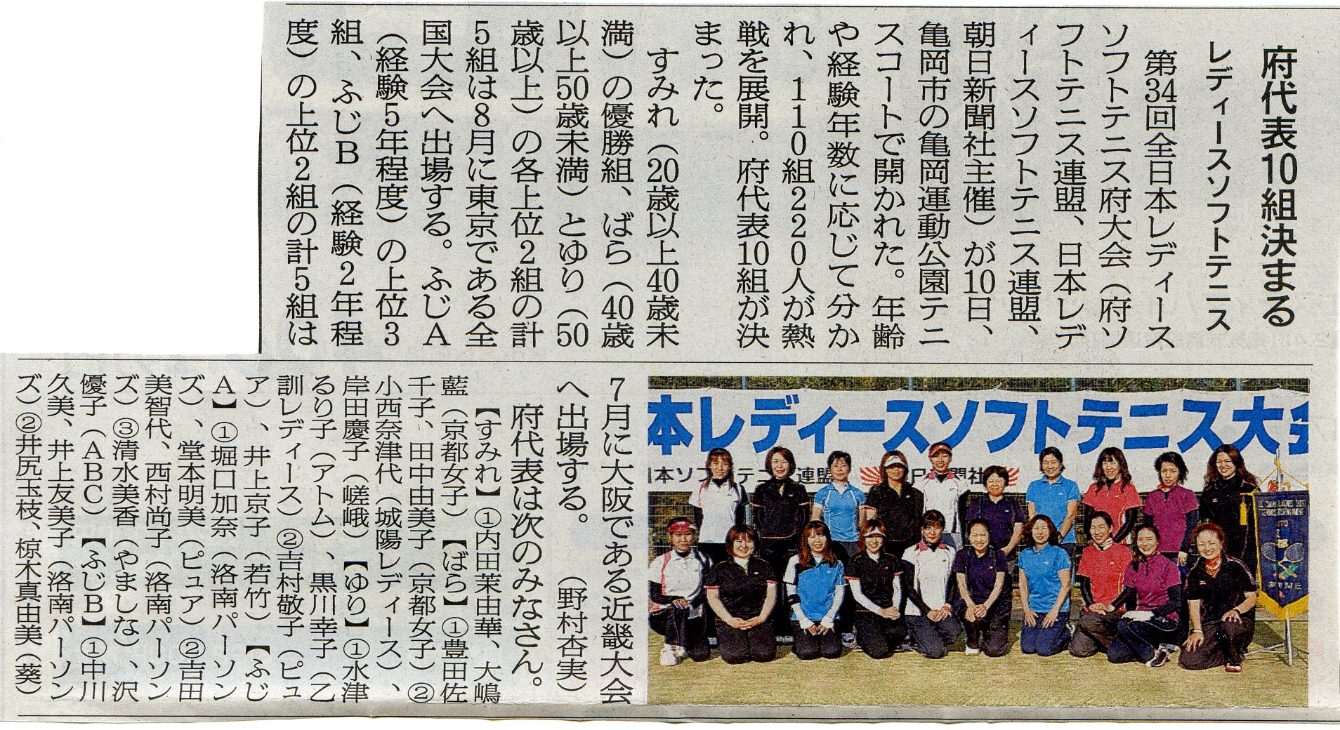 | 第34回全日本レディースソフトテニス大会京都府大会 |