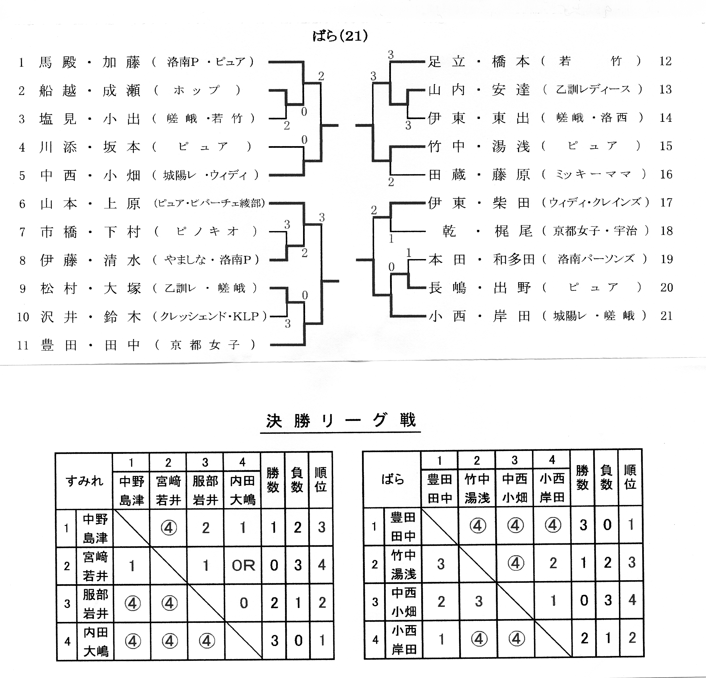 小 西 ・ 岸 田 組 小 畑 ・ 中 西 組