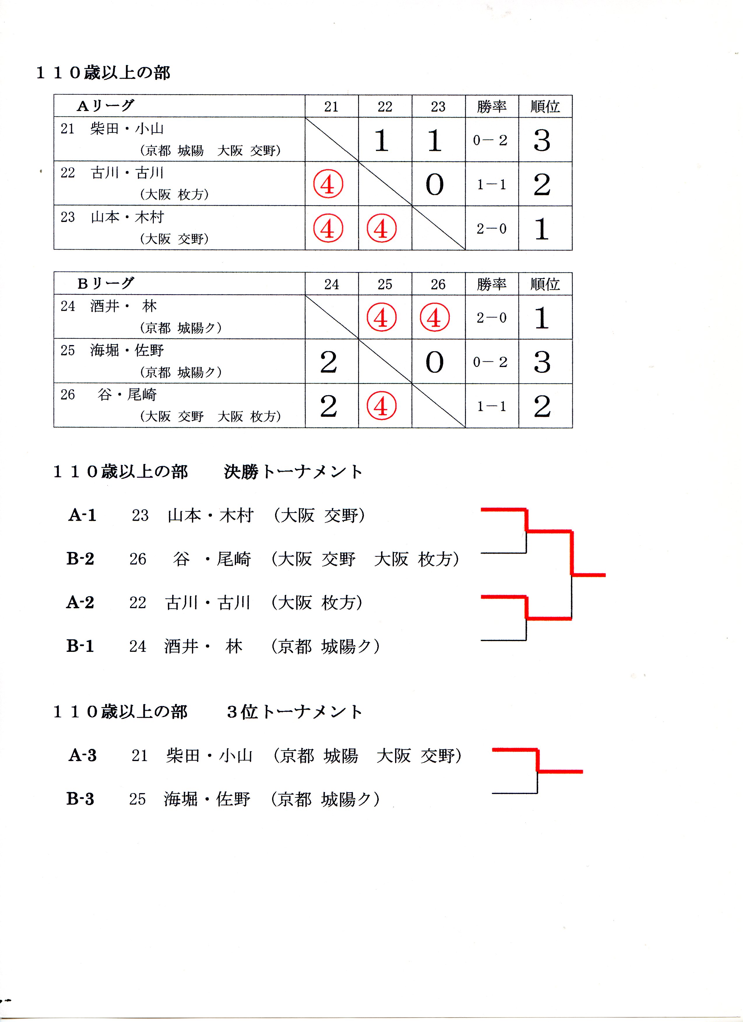 | 110歳以上の部3位トーナメン |