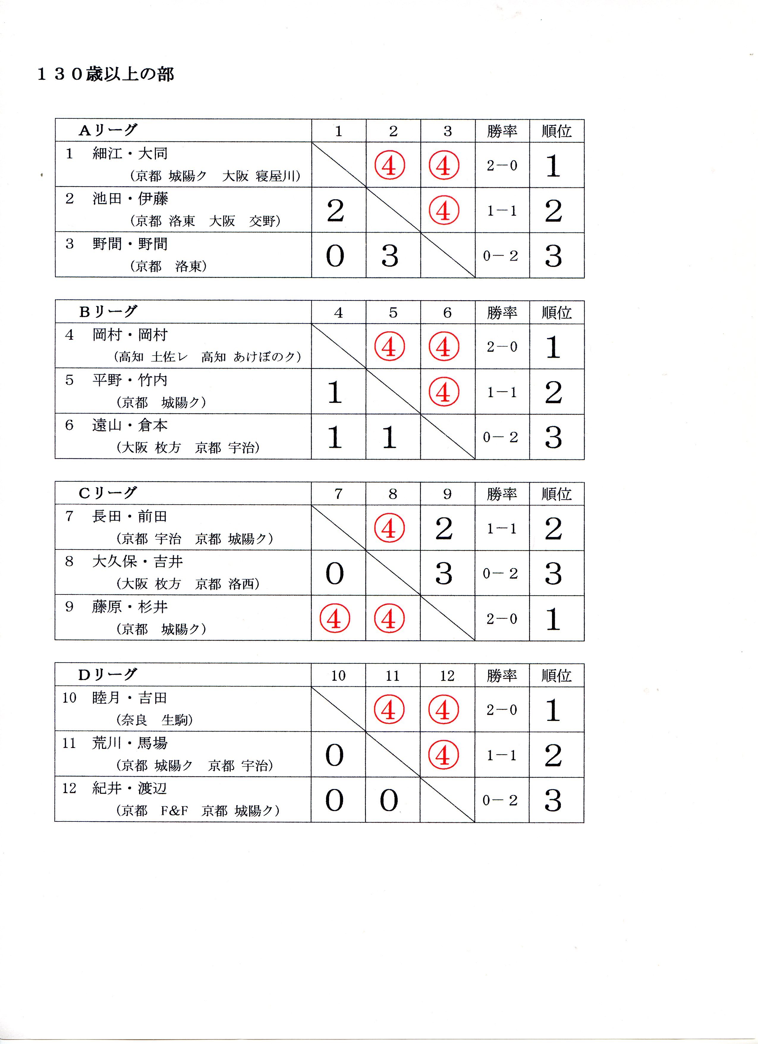 | 130歳以上の部決勝トーナメン |